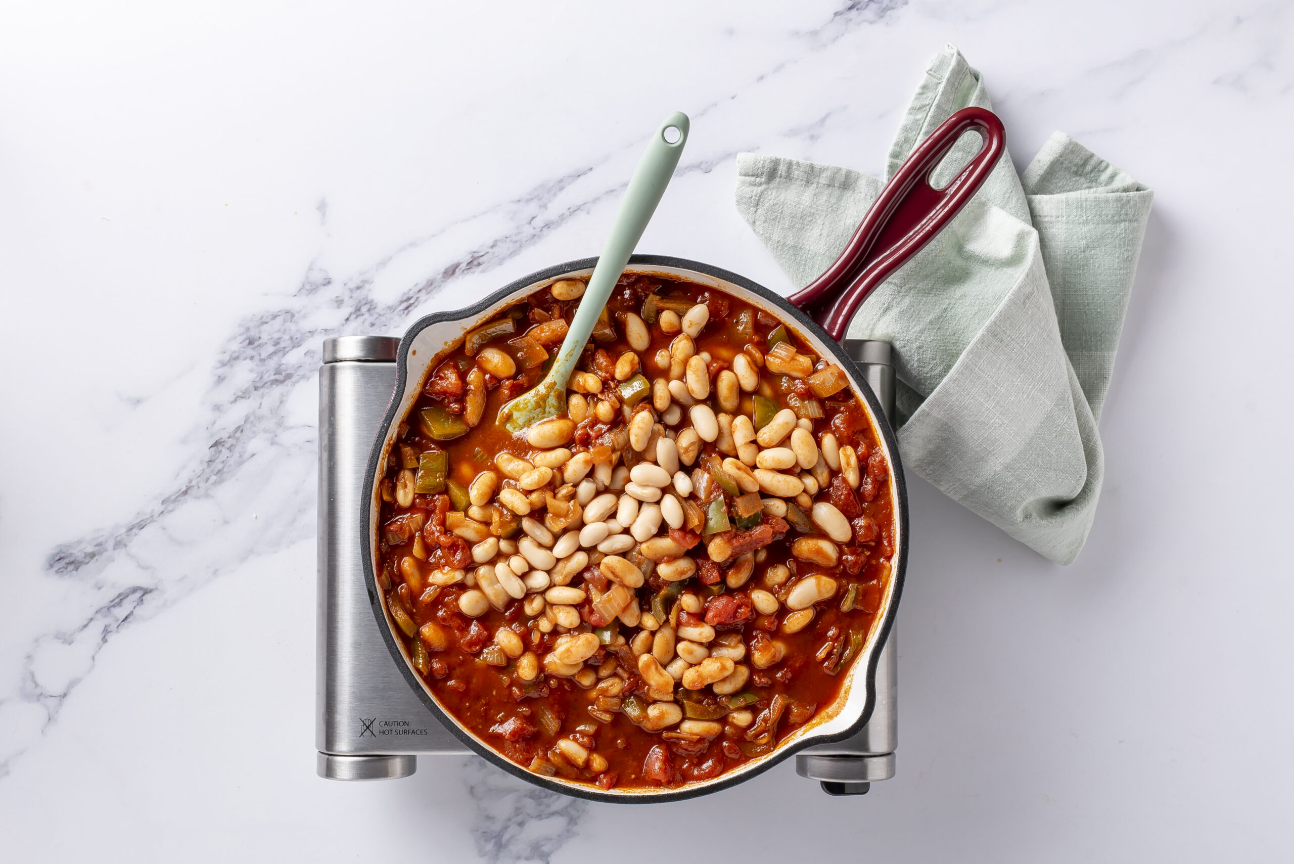 Add the cannellini beans and simmer, uncovered, for A further 15-20 minutes until the bean mixture has reduced and thickened. Stir occasionally